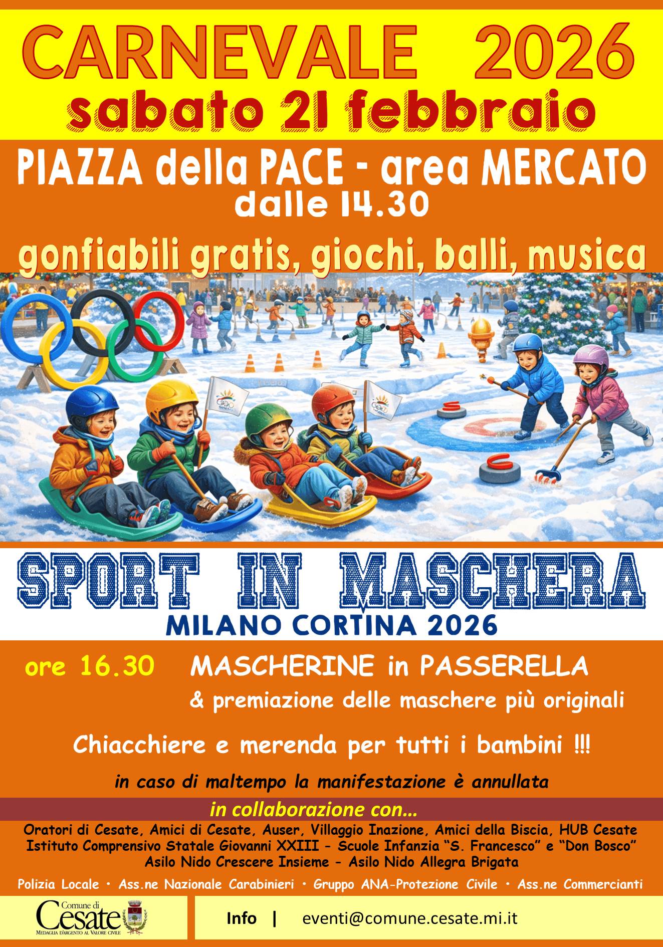 Quest’anno ci lasciamo ispirare dalle Olimpiadi Invernali Milano-Cortina 2026 con il tema 🏅 “Sport in Maschera” …ma ogni bambino è il benvenuto con il suo costume preferito!