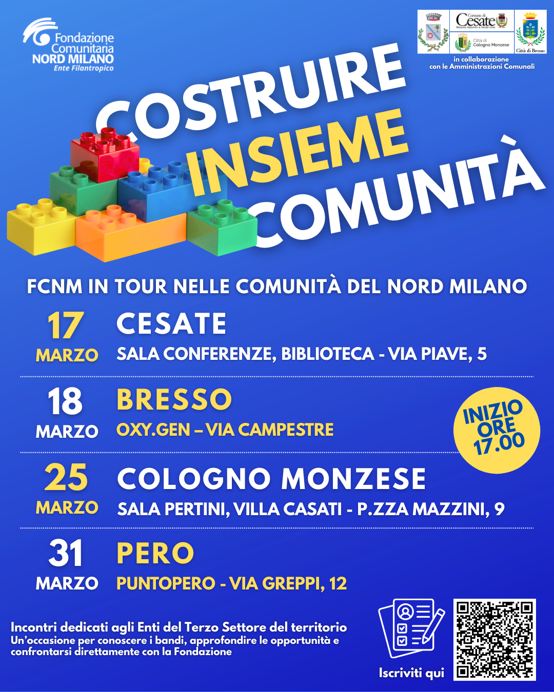 Fondazione Comunitaria Nord Milano, in collaborazione con l’Amministrazione Comunale di Cesate, promuove una tappa del tour dedicato alle associazioni e ai cittadini del Nord Milano per conoscere da vicino le opportunità offerte dai Bandi FCNM 2026.