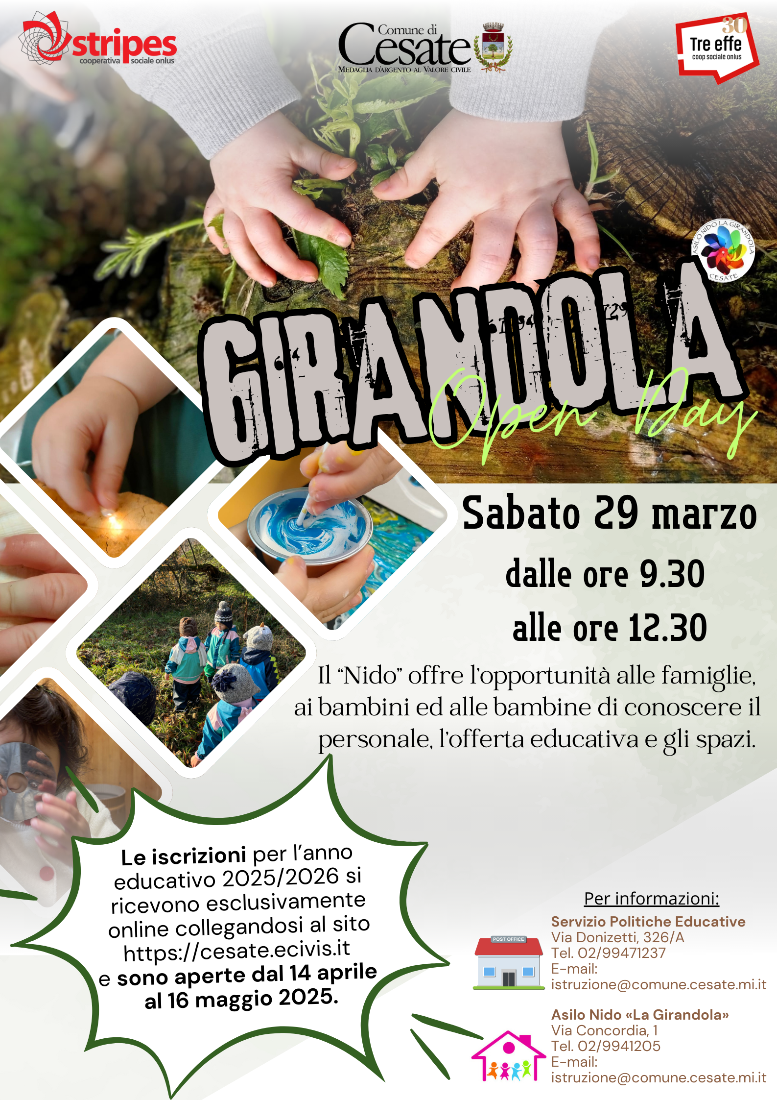 - Da lunedì 14 aprile sarà possibile iscrivere i bambini all’Asilo Nido Comunale “La Girandola” per l’ anno educativo 2025/26.