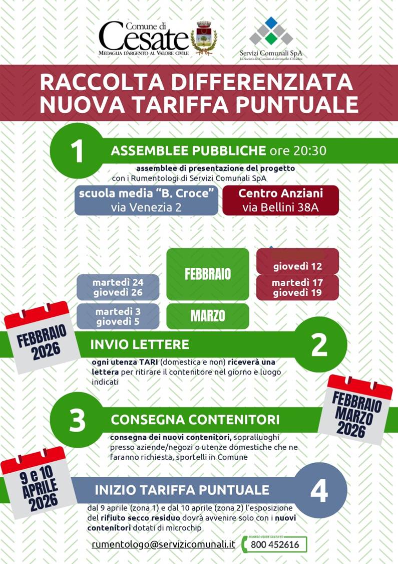 A partire da aprile 2026 anche nel Comune di Cesate entrerà in vigore la raccolta puntuale del rifiuto secco indifferenziato.