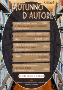 Da sabato 11 ottobre ripartirà la rassegna 𝘼𝒖𝙩𝒖𝙣𝒏𝙤 𝙙’𝘼𝒖𝙩𝒐𝙧𝒆, un ciclo di appuntamenti nel salotto della nostra Biblioteca con i libri e i loro autori, per accogliervi in un’atmosfera accogliente e stimolante.