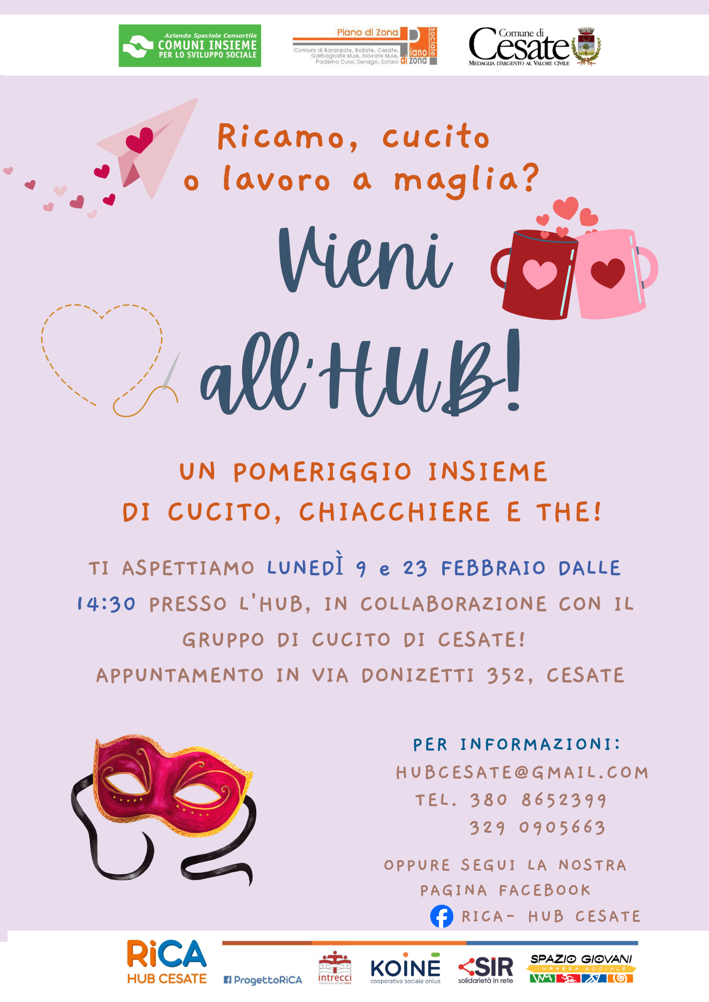 Unisciti al gruppo per un pomeriggio di cucito, chiacchiere e tè in compagnia!