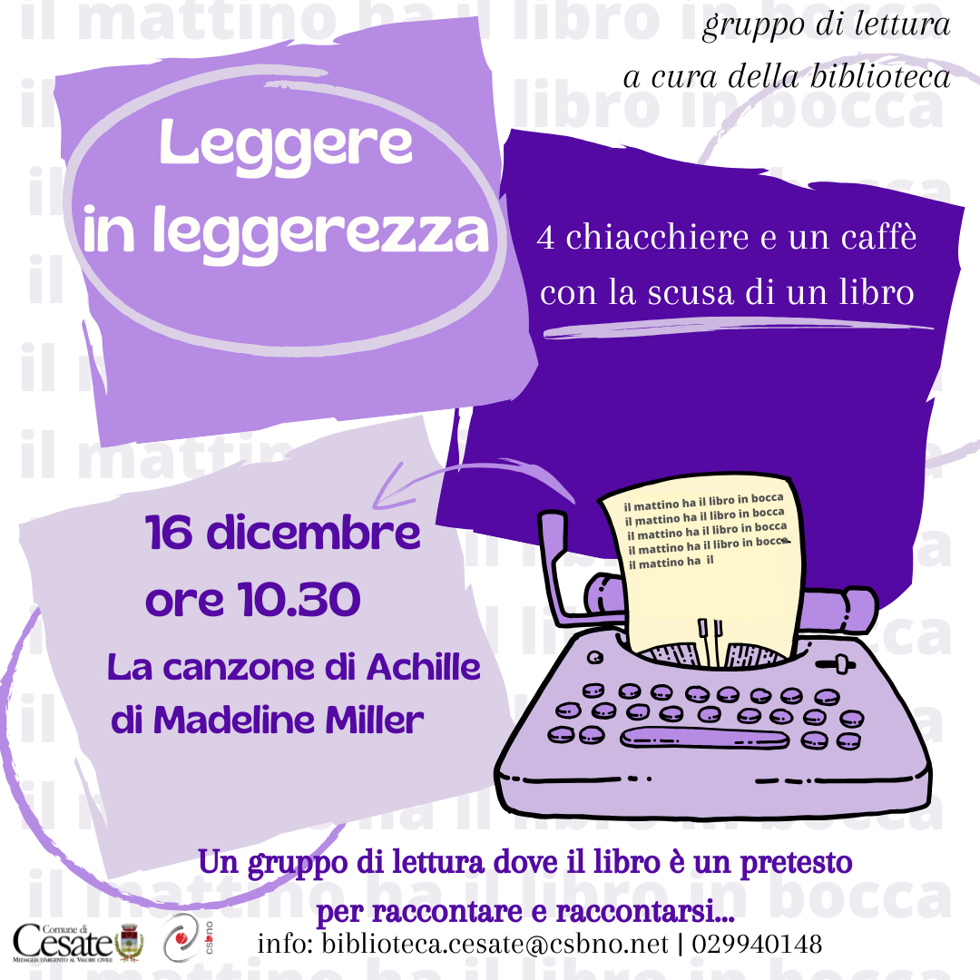 Il libro di cui si parlerà è ” La canzone di Achille” di  Madeline Miller